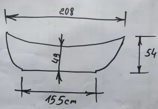 Gesamtlänge ca. 208 cm, Breite: in der Mitte 49 cm