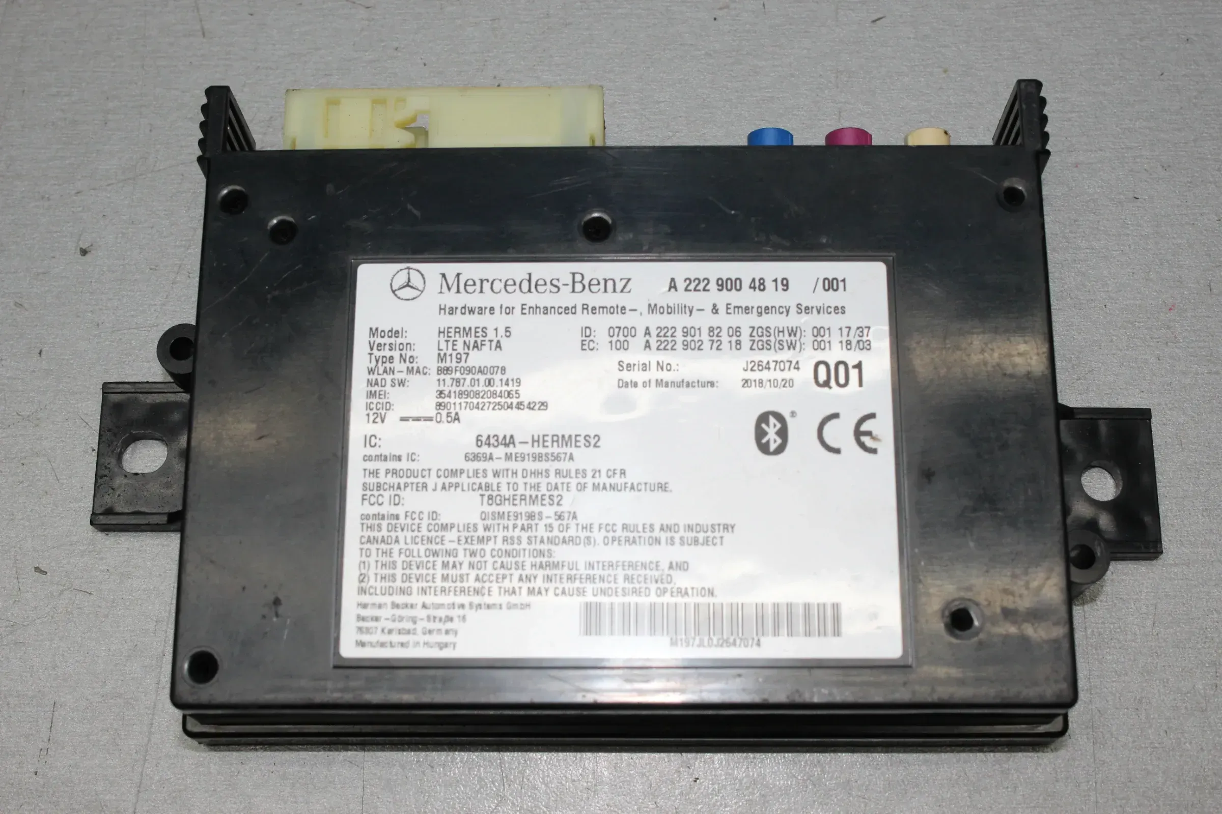 Mercedes Benz W222 Steuergerät Bluetooth Modul A2229004819, A2229018206