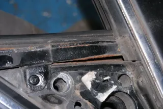 Tür vorne links, hat Roststellen, Lackrissen, oben ist ein Lederstreifen, s.Bilder