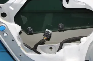 Tür mit Türscheibe, Türschloss, Türgriff, Verkabelung
